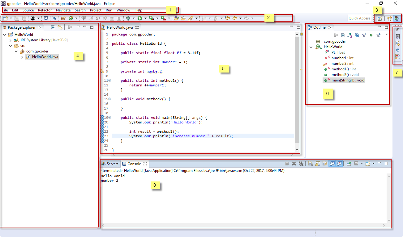 Trong bài này tôi sẽ giới thiệu với các vùng làm việc của Eclipse.