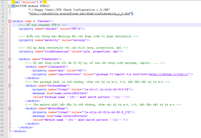 Đầu tiên chúng ta sẽ tạo 1 configuration file có tên là [GPCoder]_CheckStyle_v1.0.xml với nội dung như sau: