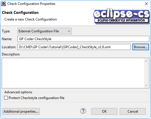 New -> chọn External Configuration File và browse đến file config [GPCoder]_CheckStyle_v1.0.xml