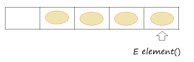 Lấy ra nhưng không loại bỏ phần tử đứng đầu của hàng đợi. Phương thức này chỉ khác với peek() là nó ném ra ngoại lệ nếu hàng đợi không có phần tử.