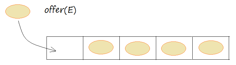 Thêm phần tử vào hàng đợi nếu có thể làm điều đó ngay lập tức nếu không bị giới hạn bởi kích thước hàng đợi. Khi sử dụng hàng đợi có kích thước giới hạn, phương thức này khá giống với add(E), tuy nhiên phương thức này không ném ra ngoại lệ khi không trèn được phần tử vào hàng đợi, mà nó trả về false trong tình huống đó.