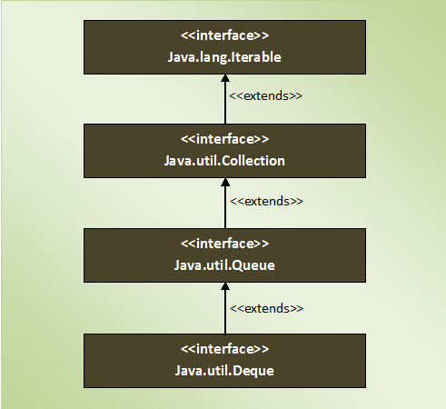 Deque Intefac kế thừa (extend) Queue Interface, nó thừa hưởng tất cả các phương thức của Queue Interface. Vì vậy, bạn có thể sử dụng tất cả những phương thức thừa kế để thực hiện các hoạt động Queue. Ngoài ra, các phương thức được định nghĩa trong Deque Interface cũng có thể được sử dụng cho các hoạt động Queue. Dưới đây là danh sách các phương thức Queue và phương pháp Deque tương đương của chúng: