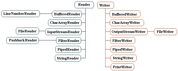 Luồng Java Byte được sử dụng để thực hiện input và output của byte 8-bit, trong khi các luồng ký tự được sử dụng để thực hiện input và output cho unicode 16 bit. Có nhiều lớp liên quan đến các luồng ký tự nhưng các lớp này được dẫn đầu bởi 2 class Reader và Writer: